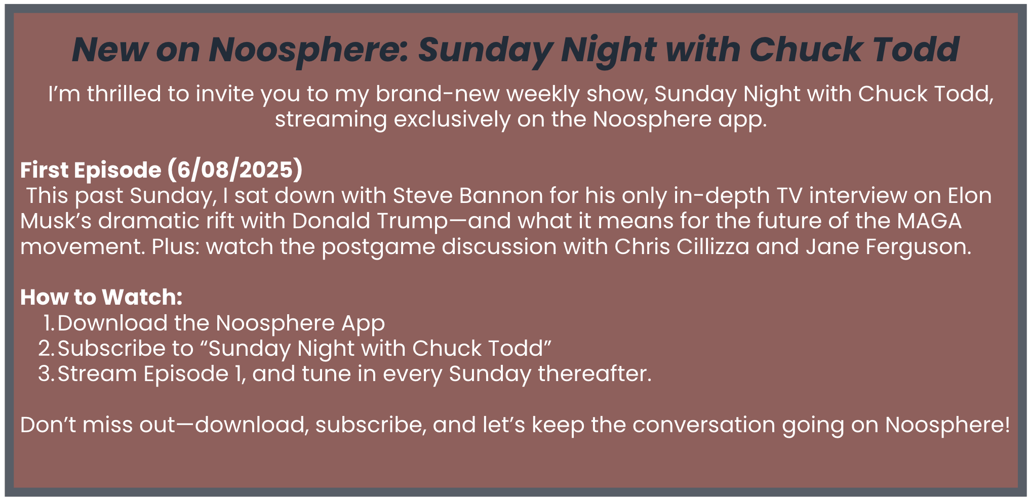 Hey, Chuck, I love your commentary but can’t pay for some new app to watch your important interviews. Plus all the place you appear are East Coast local. How about making more material available on Substack?